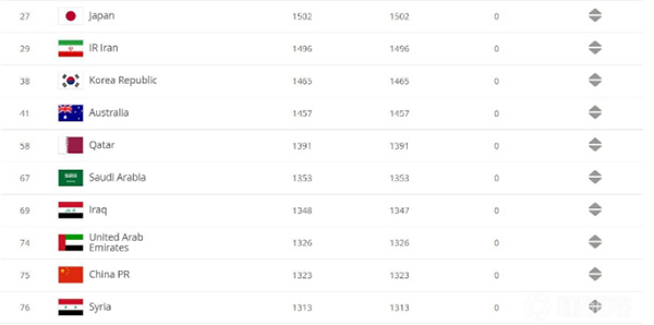 FIFA最新一期世界排名:比利时位列榜首,国足仍居第75位