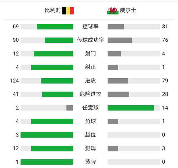 第10分钟,威尔士打出精彩反击,贝尔和右路的罗伯茨做出二过一配合后送出直塞,威尔逊插入禁区左脚推射将球打进,比利时0-1威尔士。
