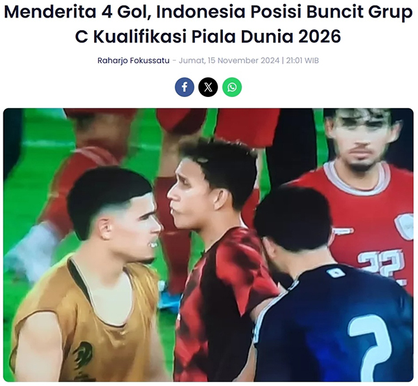 当然也有清醒的印尼媒体,FOKUSSATU就悲观评价道:“0-4意味着印尼队仍然只有3个积分,且净胜球只有-5。对于印尼队来说,想获得2026世界杯参赛资格将面临非常艰难的争夺。印尼队将在11月19日在同一片主场再次出战沙特,如果他们再度输球,印尼队的晋级希望就将破灭。”