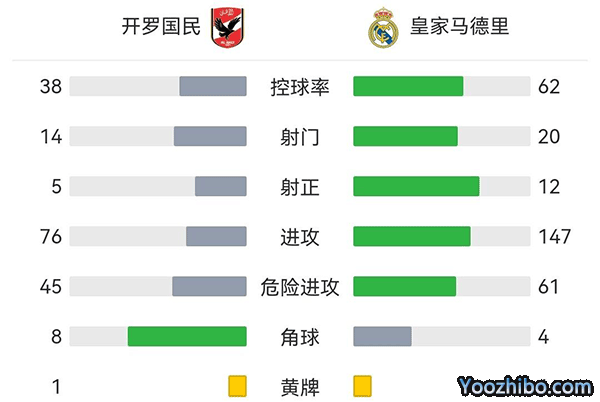全场比赛结束,最终皇家马德里4-1战胜开罗国民!