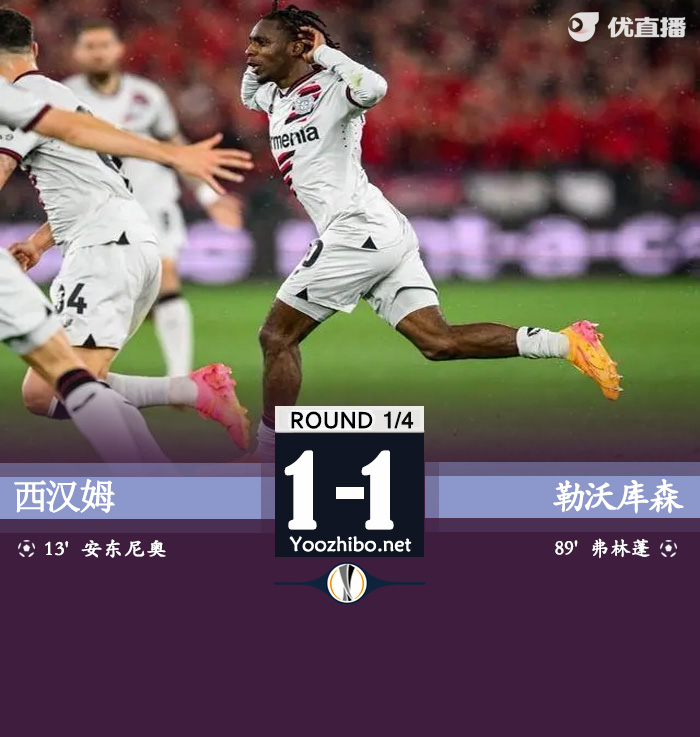 足球直播欧联杯 04月19日 欧联杯1/4决赛次回合 西汉姆vs勒沃库森 全场录像及集锦