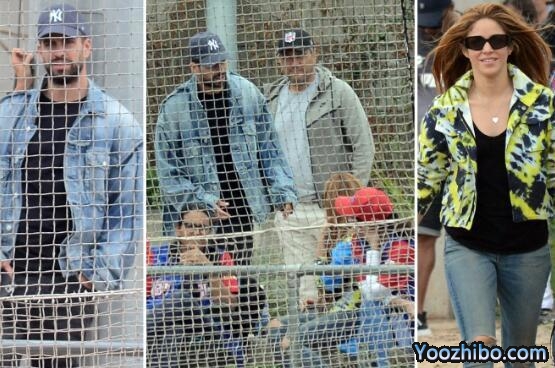 从曝光的照片可以看到,穿着帅气牛仔衣、戴着棒球帽的皮克,手插裤兜与母亲站在球场一侧,而一身便装戴着墨镜的夏姐,则与母亲还有好友,站在球场的另一侧。