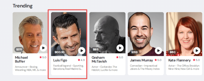 虽然职业生涯收入不少,但是菲戈的花销也大,再加上生活总是需要赚钱,近期,菲戈的一个选择也是让很多球迷有些失望。为什么呢?昔日球迷想要得到菲戈的签名是很难的,而如今只需要花费100美元就能够让菲戈为你定制私人的生日祝福。