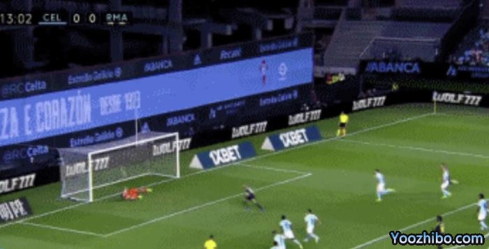 JRS直播网08月21日讯 皇马vs塞尔塔第14分钟,阿拉巴造点,本泽马操刀主罚将球打进!