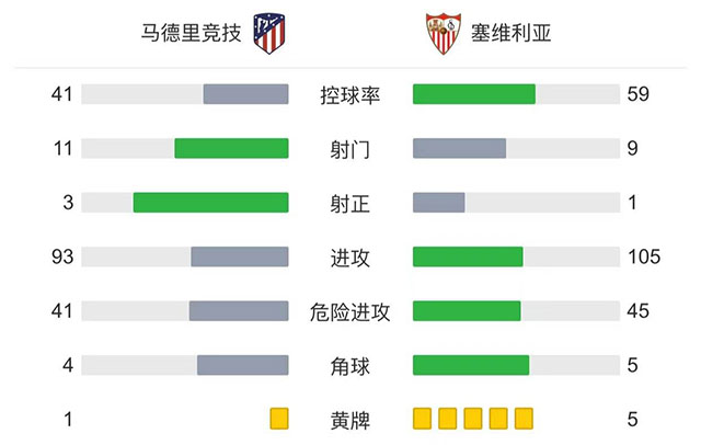 全场比赛结束,马竞1-1塞维利亚。