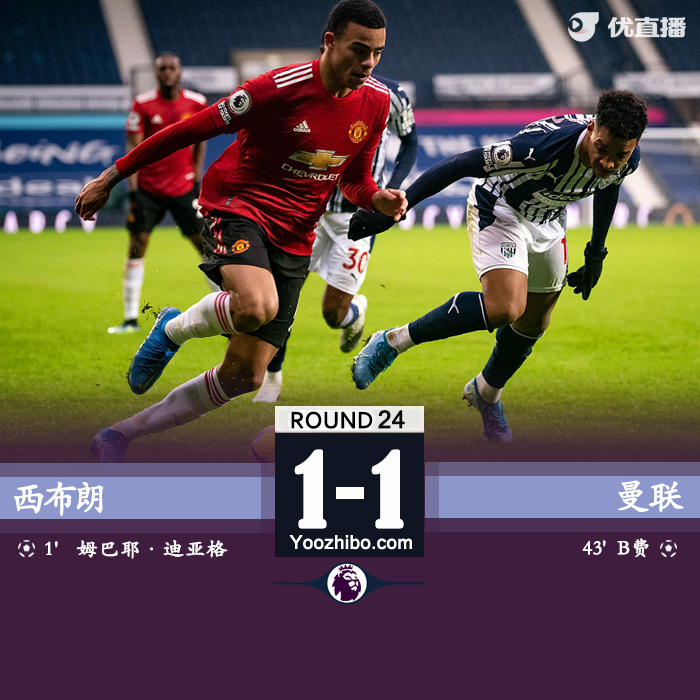 JRS直播网2月14日讯 北京时间2月14日22点,英超第24轮曼联客场挑战西布朗。上半场,迪亚涅闪击破门,B费在上半场尾声时扳平比分.下半场,西布朗完成门线解围,马奎尔出现失误,德赫亚也扑出迪亚涅的单刀,马奎尔补时阶段头球中柱。全场比赛结束,曼联1-1西布朗。本场比赛过后,曼联积46分以净胜球优势反超莱斯特城排在积分榜第二。