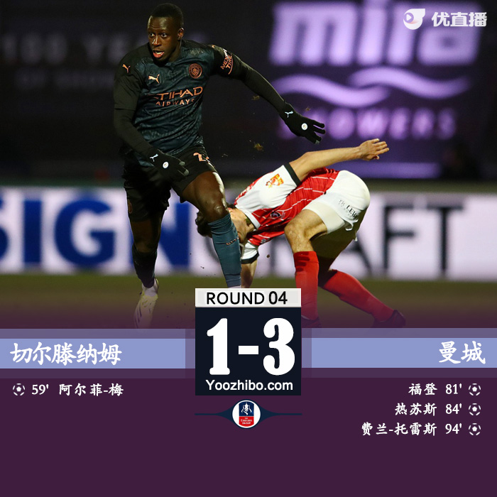 JRS直播网1月24日讯 北京时间1月24日01:30,足总杯第4轮继续进行,曼城客场挑战英乙球队切尔滕纳姆。上半场,B-门迪的射门被托泽尔在门线上解围。下半场,阿尔菲-梅利用界外球战术打进1球,福登和热苏斯连入两球逆转比分,补时阶段费兰-托雷斯再入1球锁定胜局。最终,曼城3-1客场逆转切尔滕纳姆,顺利晋级16强。