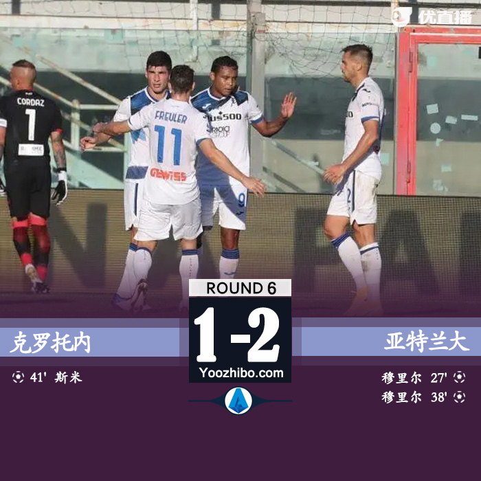 JRS直播网讯:北京时间10月31日晚至11月1日凌晨,2020-2021赛季欧洲五大联赛最新一轮比赛展开争夺。其中,克罗托内主场迎战亚特兰大,穆里尔梅开二度,亚特兰大2-1客胜克罗托内结束2连败。