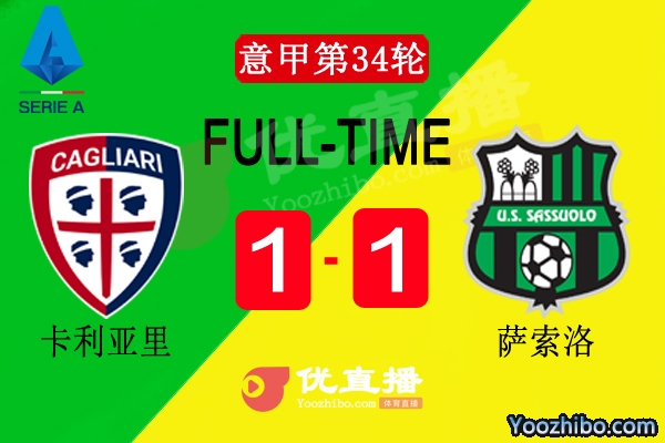 JRS直播网讯 北京时间2020年07月19日01点30分进行的意甲第34轮比赛,卡利亚里主场对阵萨索洛。卡利亚里以1:1与萨索洛握手言和。