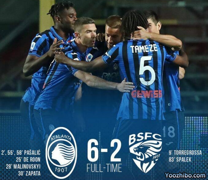 全场比赛结束,亚特兰大主场6-2狂屠布雷西亚,在先赛一场的情况下,以2分优势反超国米升至积分榜第2。