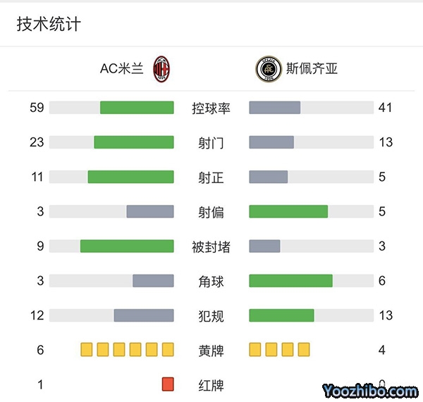 全场比赛结束,最终AC米兰主场2-1战胜斯佩齐亚。