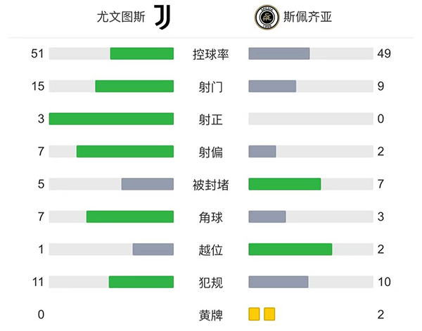 全场比赛结束,尤文2-0斯佩齐亚。
