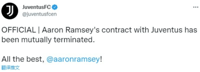 来源:JRS直播网07-27 10:25JRS直播网07月27日讯 据尤文图斯官方消息,俱乐部已与拉姆塞提前解约,这位威尔士国脚现在已成为自由球员。