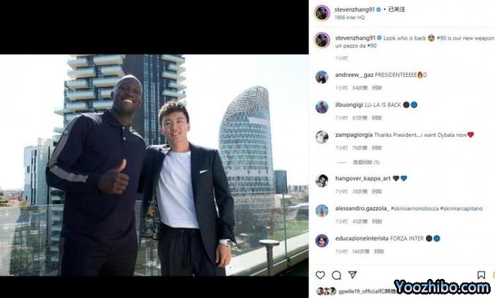 JRS直播网06月30日讯今天,国米主席张康阳在Instagram上晒出自己与卢卡库的合照,欢迎这位比利时锋霸回归蓝黑军团。