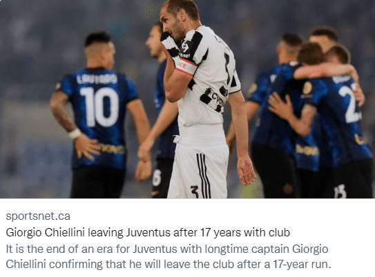 基耶利尼:本赛季结束后我将离开尤文图斯