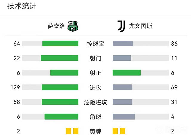 全场比赛结束,最终尤文2-1逆转萨索洛。