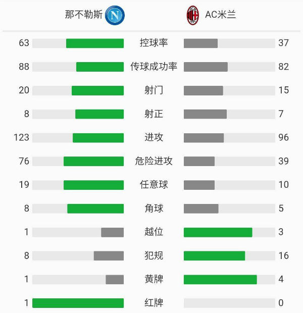 北京时间11月23日3:45JRS直播网讯,意甲第8轮,那不勒斯迎战AC米兰。上半时特奥助伊布为AC米兰先拔头筹,迪洛伦佐中框。下半时雷比奇助伊布达成双响,默滕斯扳回1球,巴卡约科两黄一红退场,那不勒斯10打11,海于格读秒破门斩个人意甲处子球。最终,AC米兰3-1那不勒斯。本场战罢,AC米兰20分,那不勒斯14分。