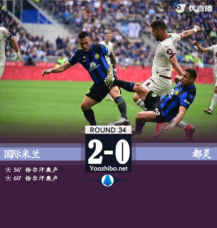 来源:JRS直播网04-28 21:00 JRS直播网讯:北京时间4月28日18:30,意甲第34轮继续进行,国际米兰坐镇主场梅阿查球场迎战都灵,女裁判卡普蒂执法本场比赛。上半场,双方机会寥寥,萨帕塔头顶脚踢造险。下半场,塔梅泽被直红罚下,随后恰尔汗奥卢四分钟连入两球。最终,国米主场2-0击败十人都灵。