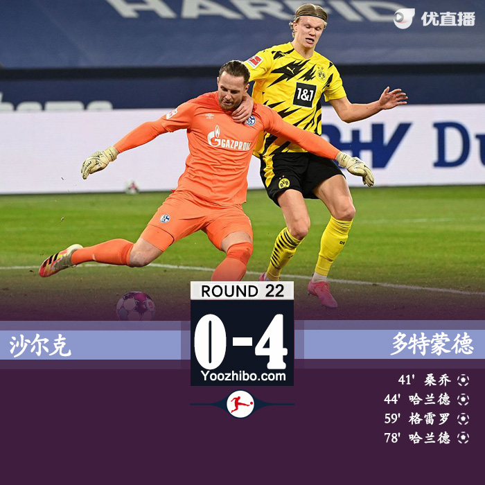 JRS直播网2月21日讯 北京时间2月21日01:30,德甲第22轮鲁尔区德比展开争夺,多特蒙德客场挑战沙尔克。上半场,桑乔利用对方后场失误劲射先下一城,随后助攻哈兰德侧钩扩大比分。下半场,罗伊斯助攻格雷罗推射破门,贝林厄姆助攻哈兰德完成梅开二度。最终,多特蒙德4-0客场大胜沙尔克全取3分,仍居第6位。