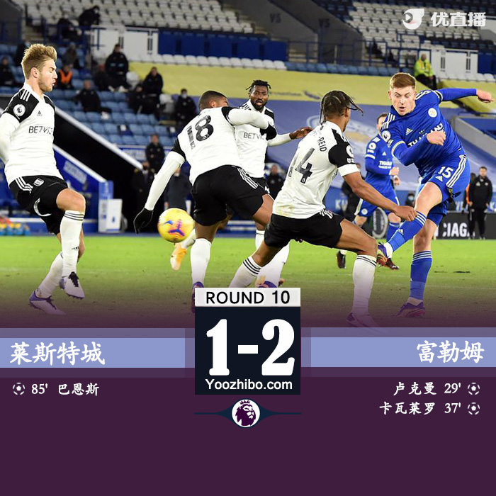 JRS直播网讯:北京时间12月1日1:30,英超第10轮,莱斯特城迎战富勒姆。上半时安古伊萨助卢克曼为富勒姆首开纪录,博比-里德造点,卡瓦莱罗罚进扩大优势。下半时瓦尔迪助伯恩斯追回1球。全场战罢,最终,莱斯特城1-2富勒姆。本场战罢,莱斯特城18分,富勒姆7分。