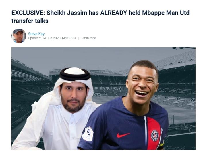 目前,贾西姆正与和英力士集团竞购曼联,两个财团究竟谁会最终胜出依旧悬而未决。如果贾西姆能为曼联引进姆巴佩,无疑为自己在收购案中笑到最后,增添非常重要的筹码。