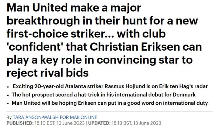 曝曼联6000万签新哈兰德获重大突破!让埃里克森游说,有信心买下