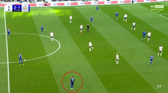 在这场比赛中,虽然热刺最终大胜,但他们在主场很长时间被莱斯特城压制,因为蒂莱曼斯的选位和控球很出色,他总是回撤到边路空档位置拿球,让热刺边锋理查利森无法高位逼抢,孔蒂只好安排全队退守。比赛中,蒂莱曼斯的传球成功率高达90%,4次长传也都全部成功找到队友。