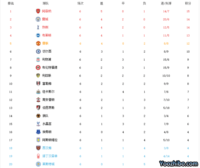 来源:JRS直播网09-05 12:58JRS直播网09月05日讯 ,英超第6轮的比赛已经全部结束争夺,本轮曼联主场3-1送阿森纳首败,红魔豪取4连胜。曼城和利物浦都战平没有拿到3分,切尔西绝杀西汉姆联,布莱顿6轮斩获13分成为最大黑马。本赛季的英超可以说大乱斗,阿森纳、热刺、曼城、利物浦、曼联和切尔西,群雄并起,冲击冠军。
