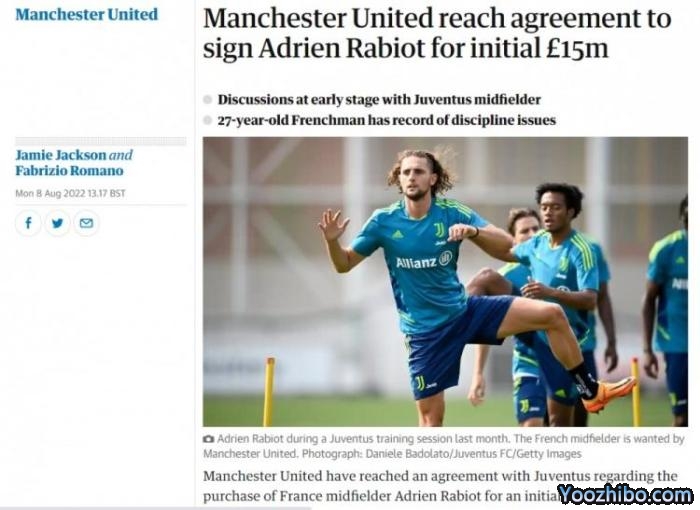 JRS直播网08月09日讯 罗马诺和天空体育消息,曼联和尤文图斯就拉比奥转会达成一致,但还要和他的母亲达成一致。