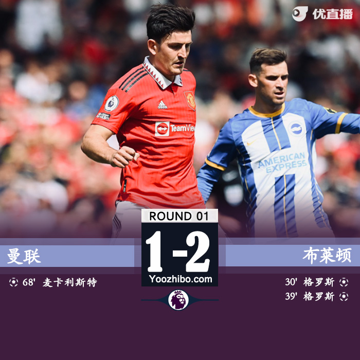 最终,曼联1-2不敌布莱顿。