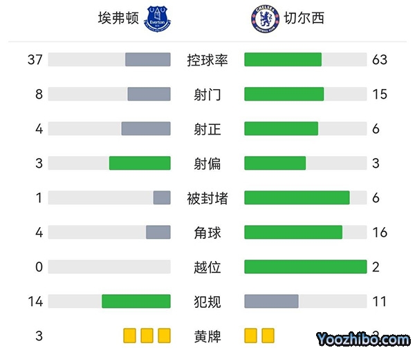 全场比赛结束,切尔西1-0击败埃弗顿。