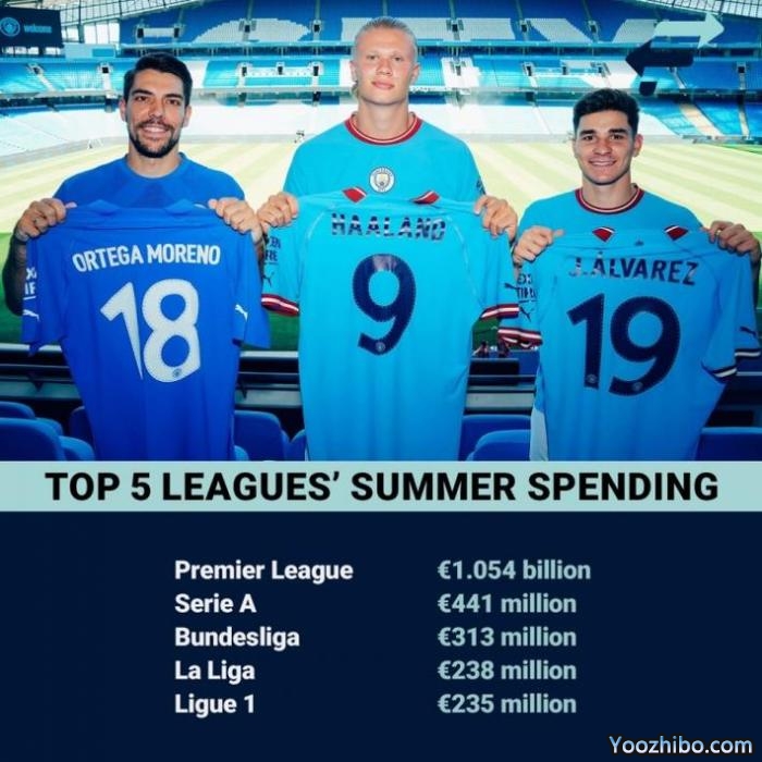 JRS直播网07月15日讯 根据统计,英超20队今夏在转会窗中已花费10.54亿欧元,接近其他四大联赛消费之和(12.27亿欧元)。