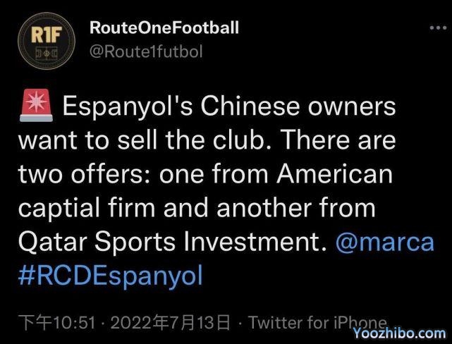 来源:JRS直播网07-14 16:57JRS直播网07月14日讯 晚,来自马卡电台Pericos Marca的消息,西甲劲旅西班牙人俱乐部老板陈雁升,正在计划出售俱乐部。目前这位中国老板已经收到了两份报价,一份来自北美的美国资本,另一份来自卡塔尔集团,后者正是法甲霸主巴黎圣日耳曼队的“金主”。