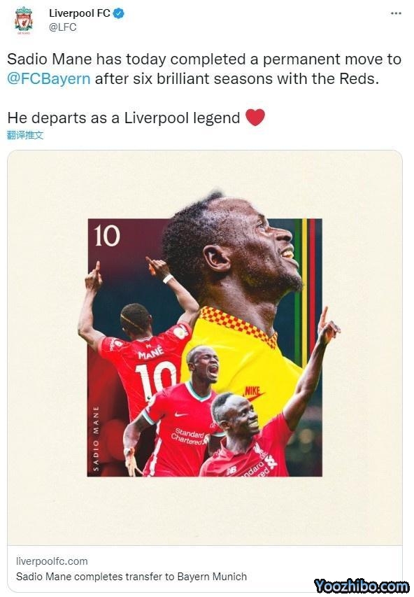 近10年利物浦出售了不少关键球员,包括托雷斯、斯特林、苏亚雷斯、库蒂尼奥和现在的马内,库鸟依然是红军转出标王,他现在效力于维拉。