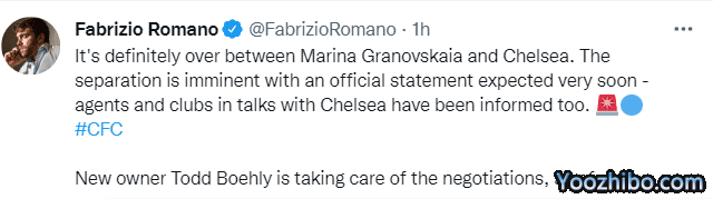 JRS直播网06月21日讯 据罗马诺报道,切尔西很快就会官宣总监玛丽娜-格拉诺夫斯卡娅离任的消息,俱乐部新老板陶德-伯利正在负责续约和转会谈判。
