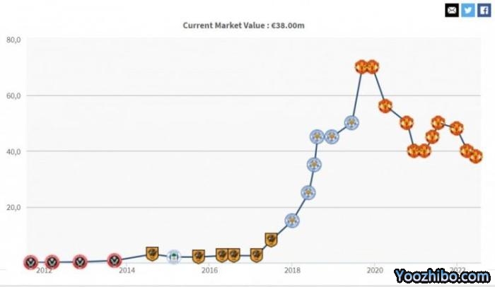 但本赛季马奎尔表现糟糕,红魔也跌出前四,如今他的身价只剩3800万欧元。