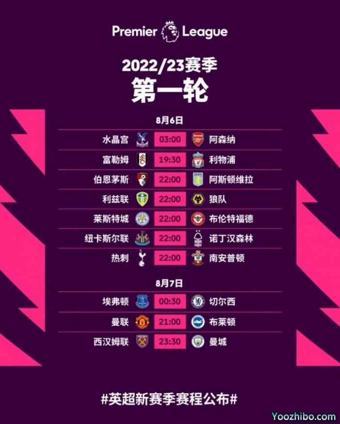 新赛季英超第16轮结束后将暂停,为冬季举办的卡塔尔世界杯让路。明年5月28日赛季结束。