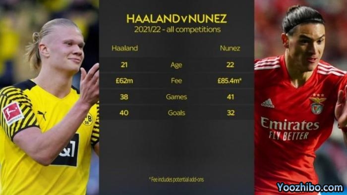 JRS直播网06月13日讯 消息,天空体育对比了哈兰德和达尔文-努涅斯这两笔英超夏季重量级签约。