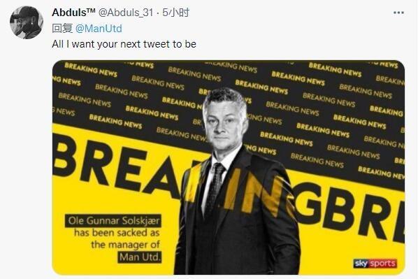 曼联近7场联赛输了5场,现在红魔球迷已经对索尔斯克亚治下的这支球队忍无可忍,并跑到俱乐部官推下方发出各种梗图和#奥莱下课#的话题,要求俱乐部解雇这位主帅。
