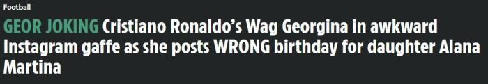 太阳报:C罗女友乔治娜为女儿庆生却写错出生日期