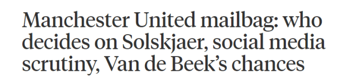 该媒体表示,三德子即将离任,他并不想将解雇索尔斯克作为自己在曼联最后的动作,同样接任他的阿诺德,也不想将解雇索帅作为他的首个动作,最终决定挪威人命运的将会是格雷泽。