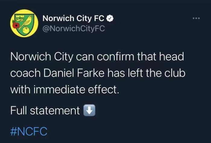 官方:诺维奇主帅法尔克下课
