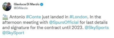 JRS直播网11月02日讯 今日,迪马济奥称,孔蒂已经飞抵伦敦,即将与热刺签约一年半直至2023年6月。
