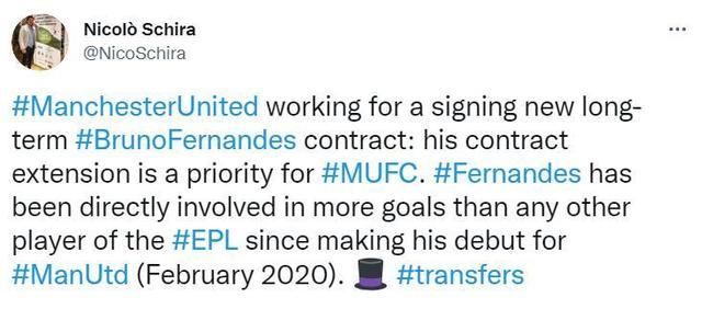 斯基拉表示,曼联准备与B费签下一份长期合同,他的续约是曼联目前的首要任务。
