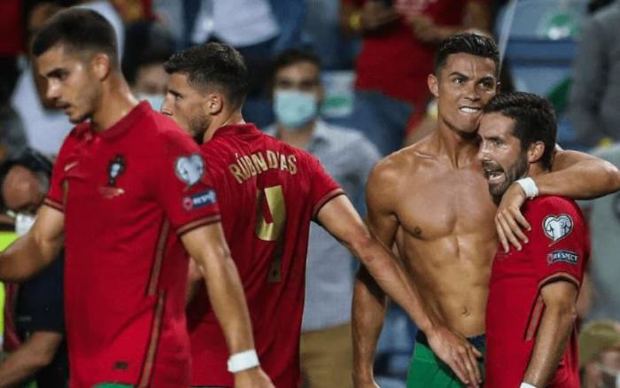 命中压哨球之后,帮助葡萄牙获得胜利,C罗兴奋地脱下了衣服展示自己的肌肉,C罗的这一次脱衣庆祝让他又吃到了一张黄牌,因为累积两张黄牌,C罗下一场对阵阿塞拜疆的比赛将自动停赛。