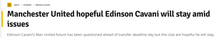 《曼晚》表示,尽管卡瓦尼对自己没有入选曼联1-1南安普顿这场比赛的大名单感到不满,但曼联方面还没有出售他的想法。