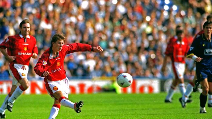 贝克汉姆的曼联经典吊射25周年!小贝做老板仍是万人迷,身材如旧