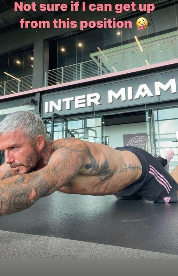 在视频中,染一头金发、留着络腮胡子的小贝,身穿自己创立的美国大联盟球队迈阿密国际的黑粉色短裤,进行高强度的健身。