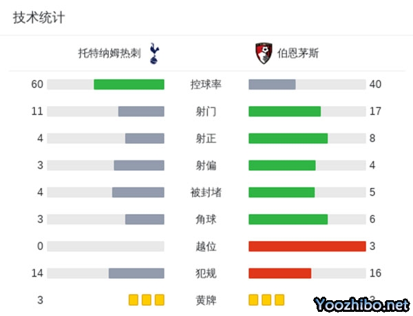 第41分钟,热刺传球失误被伯恩茅斯打出反击,科克兹左路长途奔袭后送出传中,塔弗尼埃后点包抄铲射破门,伯恩茅斯1-0热刺。