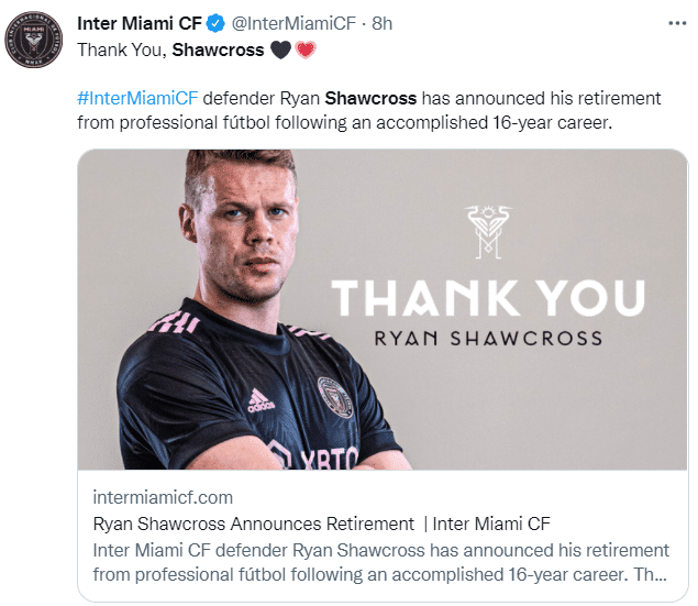JRS直播网01月11日讯 据迈阿密国际官方消息,34岁中卫肖克罗斯宣布退役。